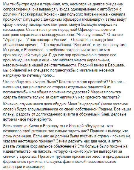 После этого документы им отдали и пропустили в Варшаву. Однако, по его мнению, все случившееся - или "шовинизм, национализм со стороны отдельных личностей из погранслужбы или общая политика государства".