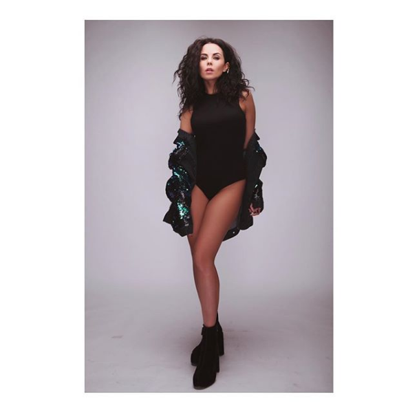 На новом фото Анастасия запечатлена в довольно откровенном образе: на певице черное боди, полусапожки и джинсовая куртка с пайетками. Ее, впрочем, почти не видно: Настя спустила ее с плеч и держит за спиной, также наряд открывает ноги певицы.