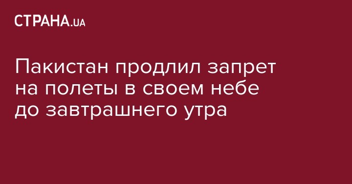 Пакистан продлил запрет на полеты в своем небе до завтрашнего утра