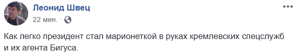 "Как легко президент стал марионеткой в руках кремлевских спецслужб и их агента Бигуса", – написал он в Facebook.