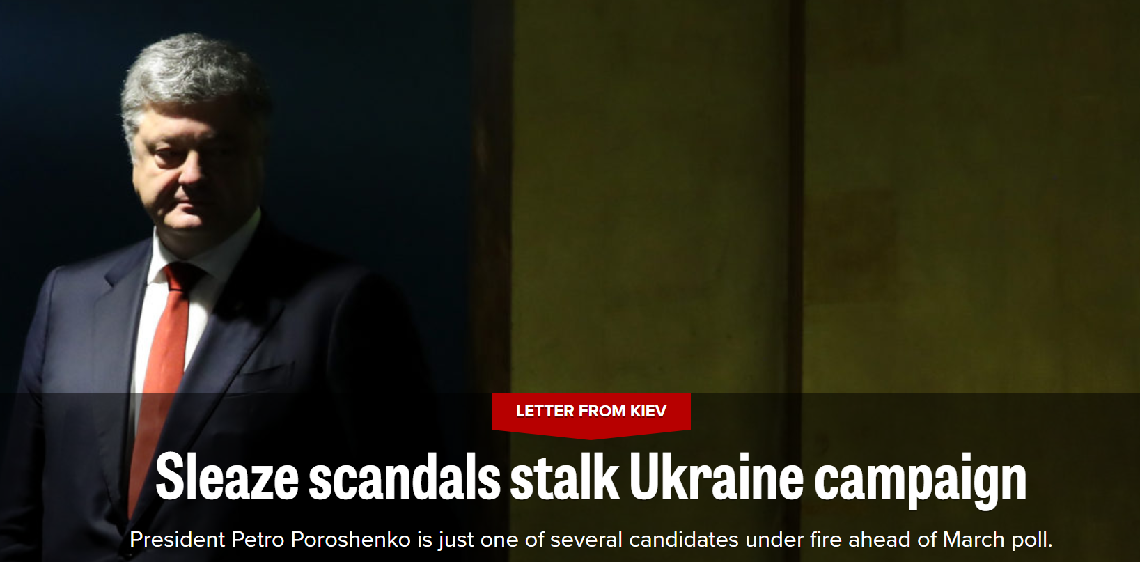 А буквально вчера, 5 марта, американское издание Politico провело свой "кастинг" украинских кандидатов. Оно заявило, что за каждым есть свой шлейф компромата. И главную роль в этом отвело президенту Порошенко, вспомнив об оружейном скандале и заявив, что это "бизнес на крови".