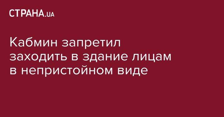 Кабинет министров запретил вход в правительственное здание лицам в виде, который не соответствуют общепринятым требованиям пристойности. Такое решение приняли на заседании правительства в среду, 6 марта. Об этом сообщают "Украинские новости"