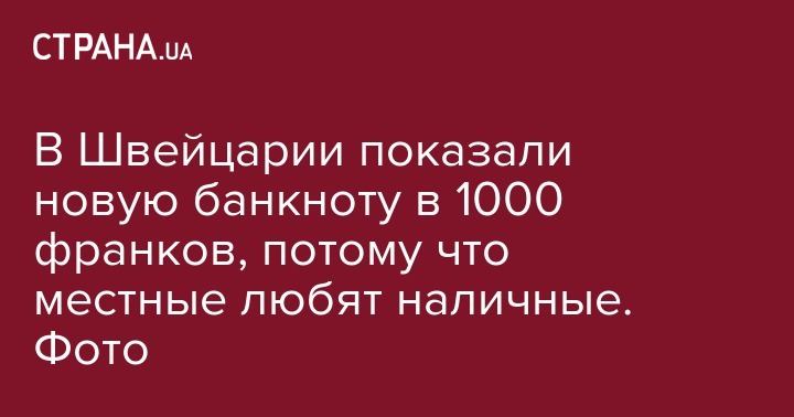 Швейцарский национальный банк (SNB, центробанк страны) представил купюру в 1000 франков нового образца, которая станет самой дорогой банкнотой Европы и второй по ценности в мире (после купюры в 10 тыс. брунейских долларов).