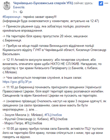 Также утром на место прибыл глава села Банилов, активисты ПЦУ пустили его на прихрамовую территорию. После этого в Бережницу также стали приезжать священники УПЦ, но на территорию храма ни их, ни верующих УПЦ представители ПЦУ не пускают. У церковных ворот начался молебен. Захватчики потребовали от представителей УПЦ либо ввести поочередные богослужения, либо опечать храм, чтобы никто не проводил службы.