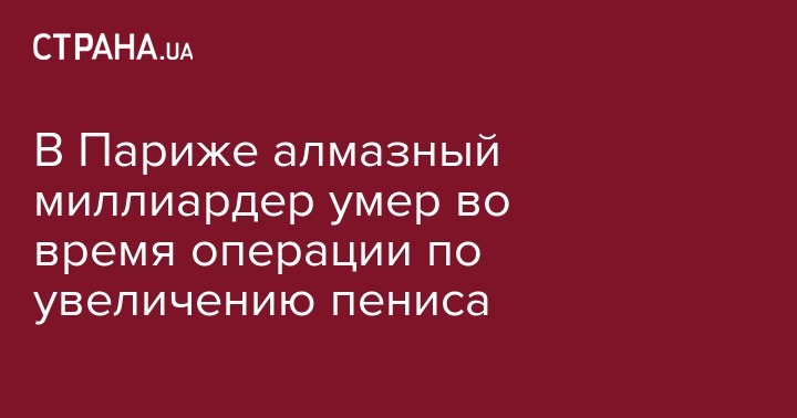 Один из лучших экспертов по оценке неограненных алмазов в мире скончался еще 2 марта. Накануне компания Omega Diamonds, которую он возглавлял, подтвердила кончину миллиардера. Мужчина пошел на операцию по увеличению полового члена, но после инъекции в гениталии у Ланиадо случился сердечный приступ. Врачам не удалось вновь запустить сердце миллиардера.