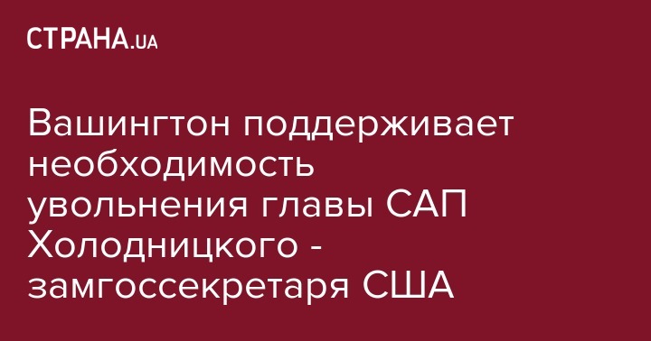 Вашингтон поддерживает необходимость увольнения главы САП Холодницкого - замгоссекретаря США