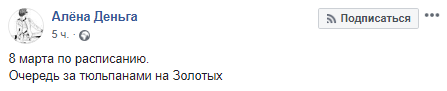 "8 Марта по расписанию. Очередь за тюльпанами на Золотых", - написала она, сопроводив пост двумя снимками, на которых видно, как возле выхода со станции метро "Золотые ворота" в центре Киева образовалась огромная очередь, большинство из стоящих в ней людей - мужчины.