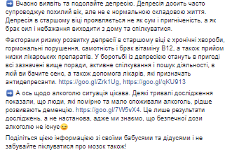 - По алкоголю ситуация интересная. Некоторые длительные исследования показали, что у людей, которые умеренно и мало потребляли алкоголь, реже развивается деменция. Это только результаты исследований, а не наставление, отметила Супрун, ведь мы знаем, что безопасной дозы алкоголя не существует.