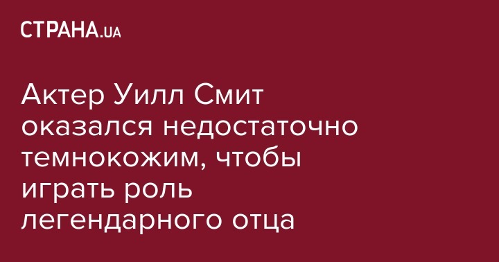 Актер Уилл Смит оказался недостаточно темнокожим, чтобы играть роль легендарного отца