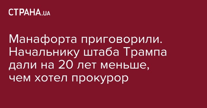 Несмотря на то, что Мюллер требовал для 69-летнего политконсультанта 24 года тюрьмы, суд отверг десять пунктов обвинения из 18-ти. В итоге Манафорт получил только 47 месяцев заключения.