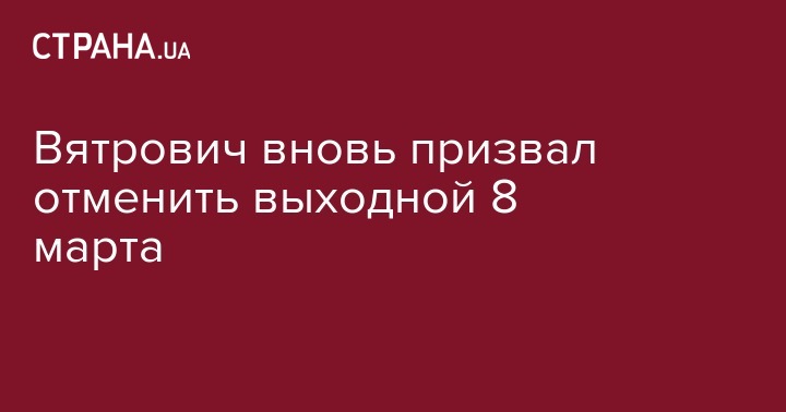 Директор института Нацпамяти Владимир Вятрович вновь призвал отменить выходной на 8 марта и поменять суть этого праздника. По его мнению, "Украина является государством, которое еще требует утверждения женских прав" и "этому может и должна способствовать как раз отмена выходного в этот день". Об этом он заявил в интервью изданию "Факты".
