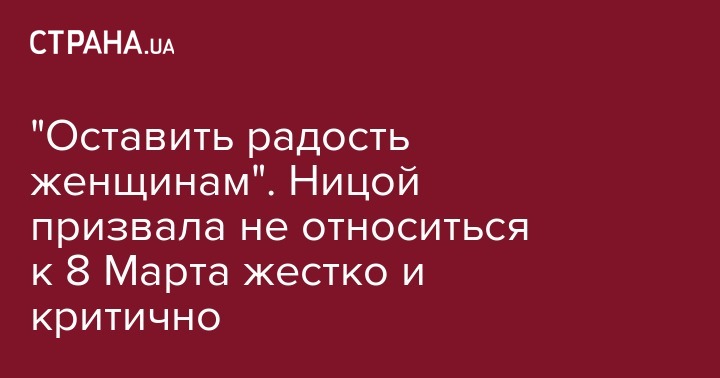 Украинская писательница Лариса Ницой призвала не относится жестко и критично к празднику 8 марта. Ранее она видела в нем "коммунизм", а сейчас попросила власти "оставить радость женщинам".