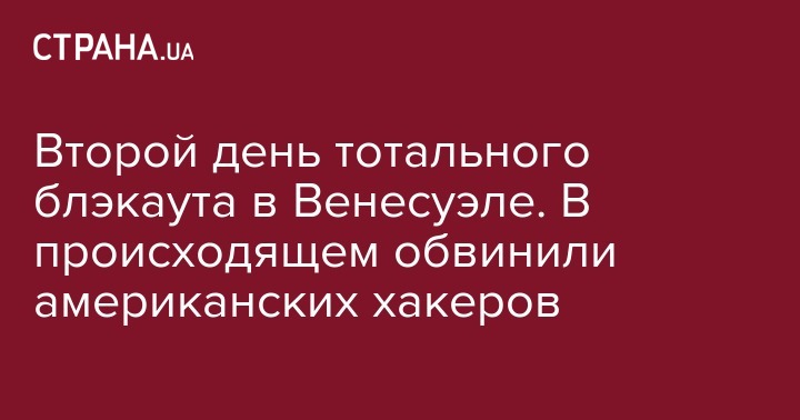 В Каракасе сообщают, что тотальный блэкаут, который в Венесуэле идет уже второй день, вызван американской кибератакой. Об этом сообщает "Интерфакс-Украина".