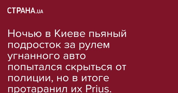 Ночью в Киеве пьяный подросток за рулем угнанного авто попытался скрыться от полиции, но в итоге протаранил их Prius. Фото и видео