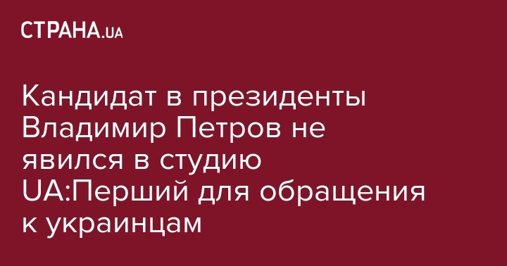 Первым сегодня должен был выступить кандидат в президенты, политтехнолог Владимир Петров. Однако он не явился в студию. Это следует из информационного сообщения телеканала.