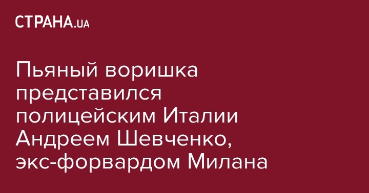Пьяный воришка представился полицейским Италии Андреем Шевченко, экс-форвардом Милана