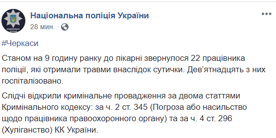 "Любому гневу есть разумные границы! То, что сегодня на митинге Порошенко в Черкассах предприняли представители Национального корпуса – недопустимо! Праведный гнев о коррупционном преступлении справедлив, но может ли он порождать другие преступные действия? Очевидно, нет. Очевидно, что многие среди агрессивно настроенных юношей хотели хардкора, а не справедливости и законности.