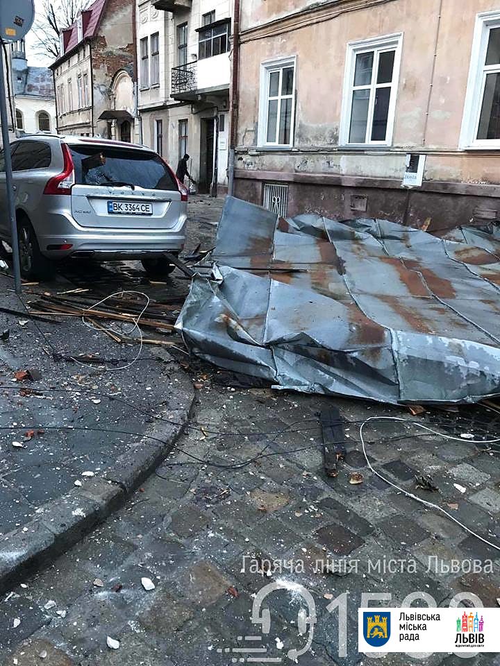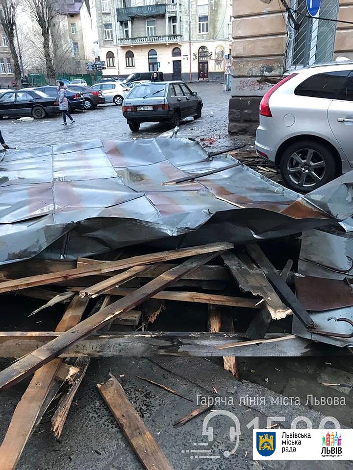 "Ветер срывает крыши". Во Львове появились первые разрушения от налетевшего урагана