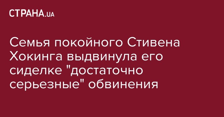 Семья известного ученого Стивена Хокинга выдвинула обвинения против его сиделки и медсестры Патриции Дауди, которая 15 лет ухаживала за ученым. Об этом сообщает The Daily Mail.