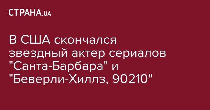 В США скончался звездный актер сериалов "Санта-Барбара" и "Беверли-Хиллз, 90210"