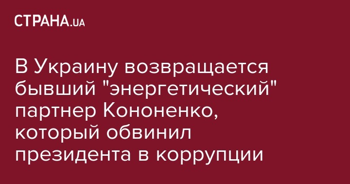 В Украину возвращается бывший "энергетический" партнер Кононенко, который обвинил президента в коррупции