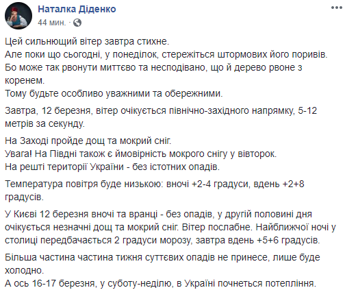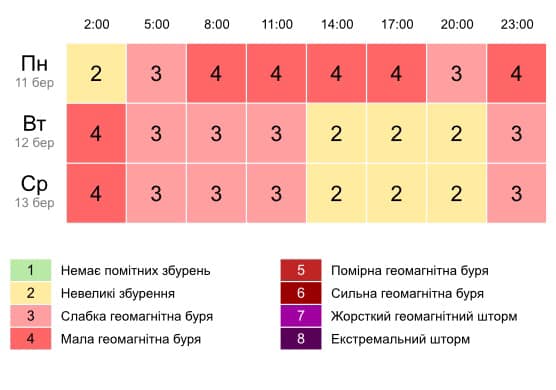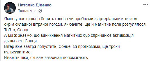 Также Наталья Диденко предупредила о магнитной буре, которая будет ощущаться до 13 марта. Метеозависимые украинцы могут ощущать в эти дни головную боль и проблемы с давлением.