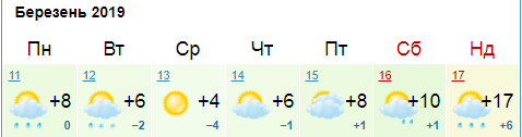 Прогноз погоды Киев с 11 по 18 марта