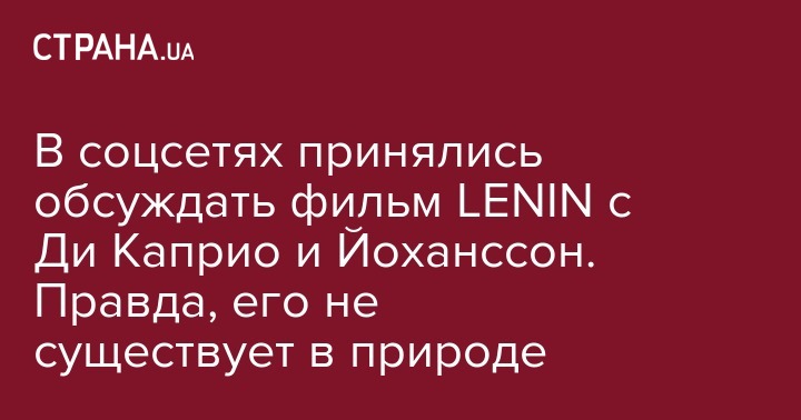 В соцсетях в очередной раз запустили фейк про съемки загадочного фильма Стивена Спилберга о Ленине в ролях с Леонардо Ди Каприо в роли вождя и Скарлетт Йоханссон в роли Надежды Крупской. Впрочем, несмотря на явный интерес к картине, ее не существует в природе.