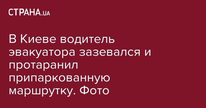 В Киеве водитель эвакуатора зазевался и протаранил припаркованную маршрутку. Фото
