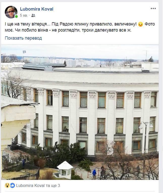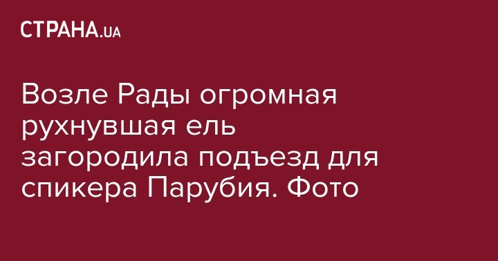 Возле Рады огромная рухнувшая ель загородила подъезд для спикера Парубия. Фото