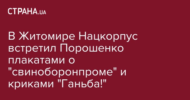 В Житомире, где сегодня, 11 марта, проходит митинг с участием Петра Порошенко, прибыли активисты "Нацкорпуса" и встретили президента криками"Ганьба!", "Мародерiв за грати", а также плакатами с изображением свиньи и надписью "Свиноборонпром". Напомним, первая фамилия главного фигуранта скандала в оборонке Олега Гладковского - Свинарчук. Об этом сообщает корреспондент "Страны".