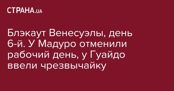 Блэкаут Венесуэлы, день 6-й. У Мадуро отменили рабочий день, у Гуайдо ввели чрезвычайку