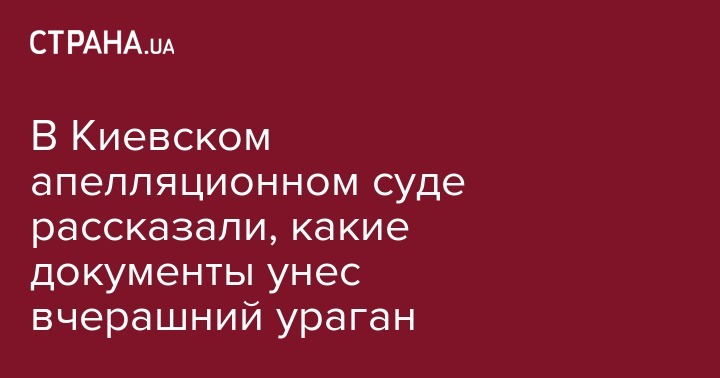 Из помещения архивного хранилища порывом ураганного ветра вынесло часть копий архивных материалов Апелляционного суда города Киева относительно определения подсудности гражданских дел, отобранных для дальнейшего уничтожения в связи с истечением сроков хранения. При этом ни одно уголовное и гражданское дело Киевского апелляционного суда не потеряли.