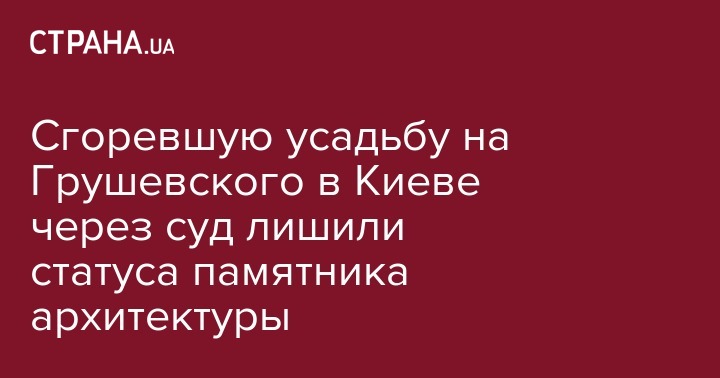 Сгоревшую усадьбу на Грушевского в Киеве через суд лишили статуса памятника архитектуры