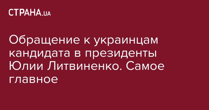 Обращение к украинцам кандидата в президенты Юлии Литвиненко. Самое главное