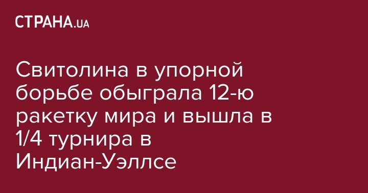 В ночь на 13 марта, лучшая украинская теннисистка Элина Свитолина в тяжелейшей борьбе преодолела четвертый раунд турнира WTA категории Premier Mandatory в Индиан-Уэллсе (США) с призовым фондом $9,035 млн.