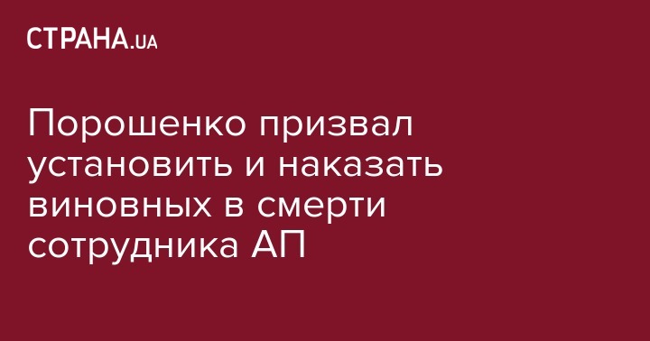 Президент Петр Порошенко выразил соболезнования родным и друзьям погибшего возле церкви в Киеве главного консультанта Главного департамента информационной политики АПУ Александра Бухтатого и призвал найти и наказать виновных в его смерти. Об этом сказано на сайте президента 14 марта.