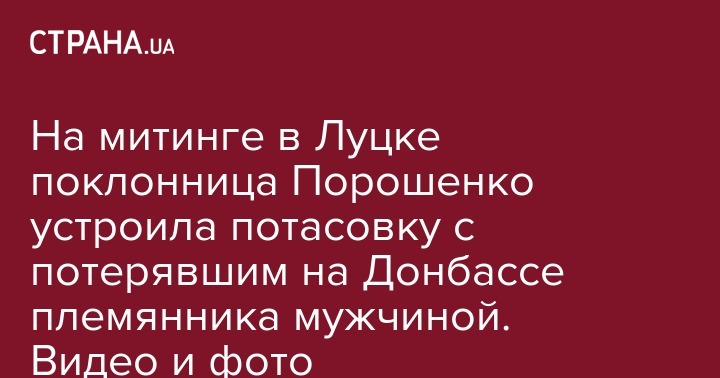 На митинге в Луцке поклонница Порошенко устроила потасовку с потерявшим на Донбассе племянника мужчиной. Видео и фото
