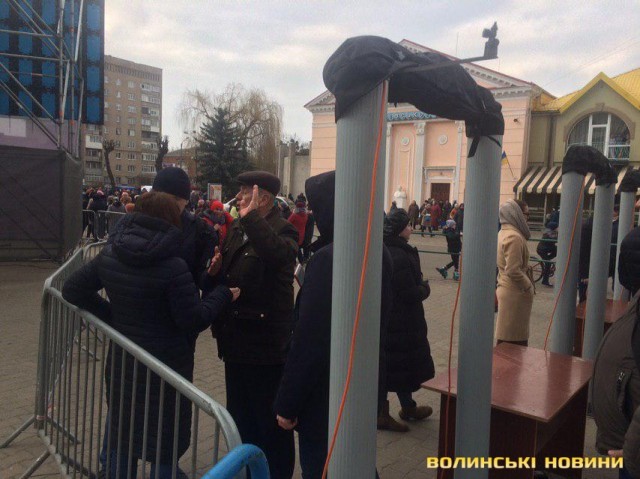 Перед приездом президента Петра Порошенко в Ковель, на центральной площади, где в его ожидании собрались люди, были установлены специальные рамки-металлоискатели, а территорию оградили. Об этом 14 марта сообщает издание Волынские новости.