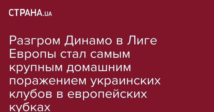 Разгром Динамо в Лиге Европы стал самым крупным домашним поражением украинских клубов в европейских кубках