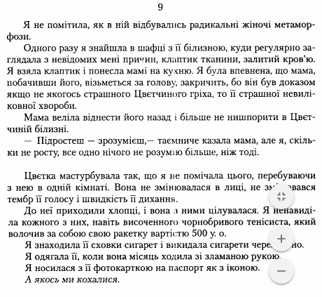 Произведение, которое стало камнем преткновения, принадлежит перу Татьяны Малярчук из Ивано-Франковска. Ее произведение "Цветка и ее я", которое вошло в скандальный учебник, посвящено отношению двух сестер, в которых одна испытает к другой романтические чувства.