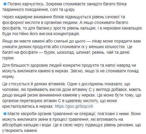 По информации Супрун, мочекаменной болезнью страдает около 12% населения мира. Камни в почках образуются в результате кристаллизации избыточного количества в организме кальция и оксалатов или фосфатов, или мочевой кислоты.