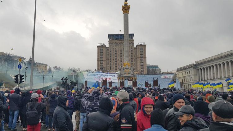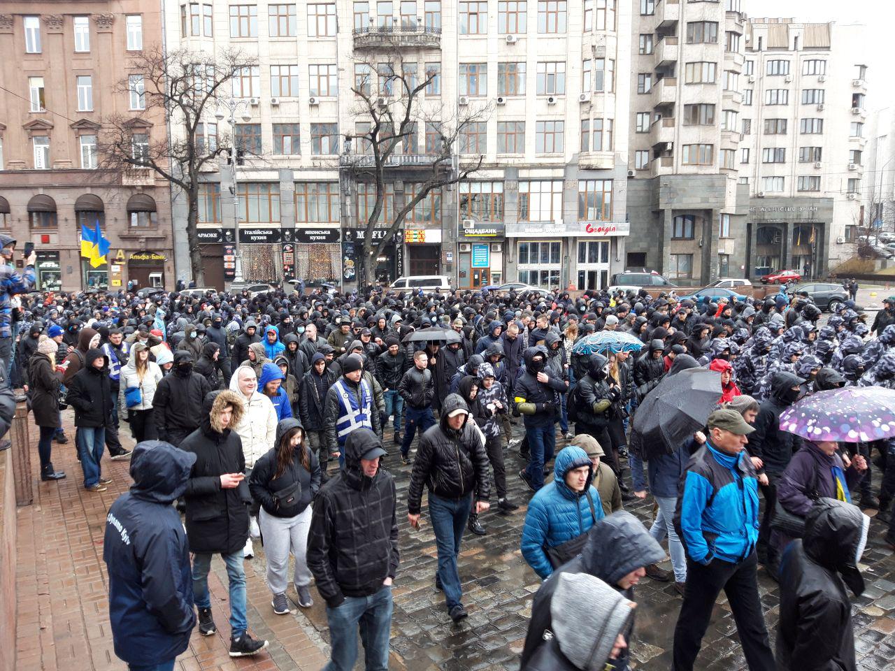 12:43  В центре Киева собралось более десяти тысяч человек - по большей части в камуфляжной форме "Нацкорпуса" и возраста 17-23 года. Все пришли с требованием расследования скандала в Укроборонпроме. Скандируют уже известный лозунг "Де вiдрубанi руки?" И "за грати".
