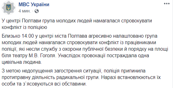 15:01  В Полтаве, у театра, где сегодня выступал Порошенко, не обошлось без столкновений. О стычке сообщила полиция. В ходе драки пострадал один гражданский, но пока никто не задержан.