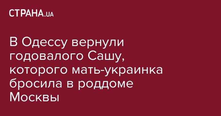 В Украину спустя год вернули рожденного в московском роддоме малыша Сашу, которого бросила мать-украинка. Возвращением ребенка занимались Одесская областная служба по делам детей, полиция и посольство Украины. Об сообщает губернатор области Максим Степанов на своей странице в Facebook.