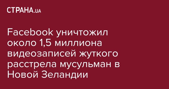 "За первые 24 часа мы сняли с публикации 1,5 миллиона видео атаки, из которых более 1,2 миллиона были заблокированы при загрузке", – говорится в сообщении.