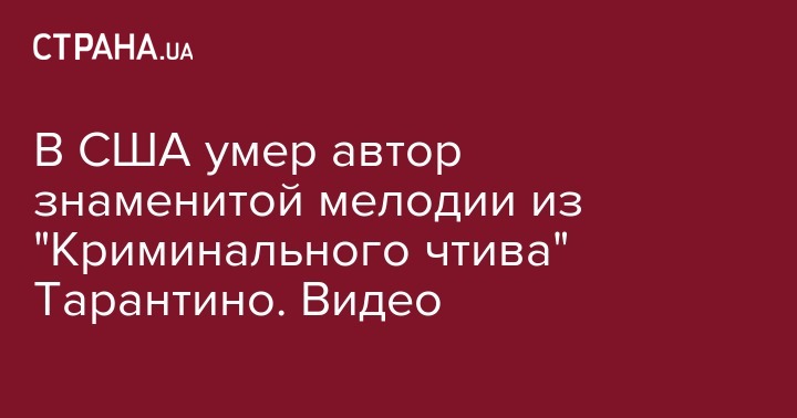 В США умер автор знаменитой мелодии из "Криминального чтива" Тарантино. Видео