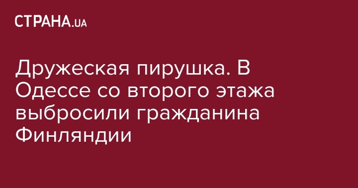 Как выяснилось гражданин Финляндии гостил у приятеля одессита. Внезапно между ним, хозяином квартиры и его друзьями разгорелась ссора. После чего иностранца вытолкнули с балкона на втором этаже. Сейчас пострадавший с травмами ног находится в больнице. Его жизни ничего не угрожает.