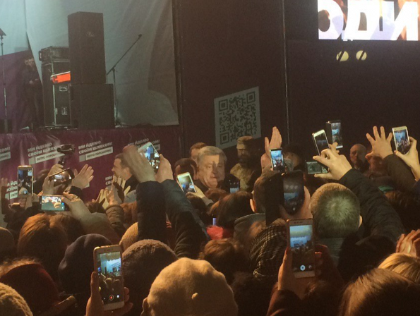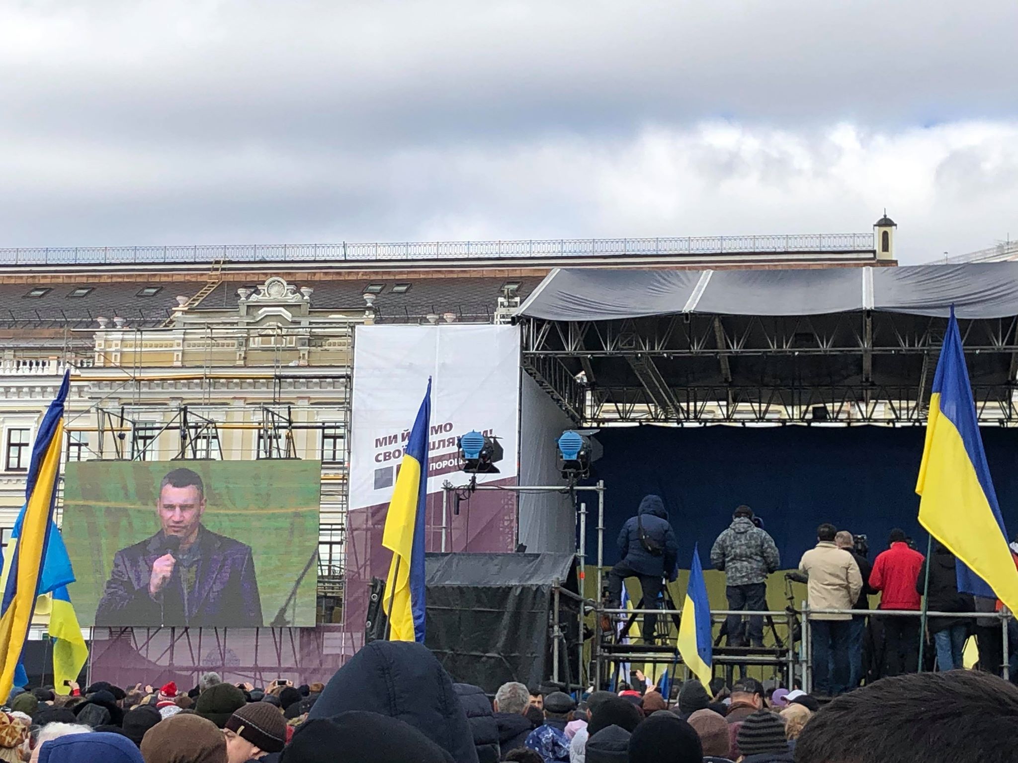На митинге выступал, кроме Порошенко, мэр Киева Виталий Кличко, а также вице-спикер парламента Ирина Геращенко.