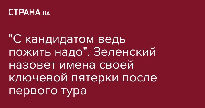 Кандидат в президенты Владимир Зеленский заявил, что ключевую пятерку своей команды он представит уже после первого тура выборов - в случае, если он пройдет во второй. Об этом пишет "Интерфакс-Украина".